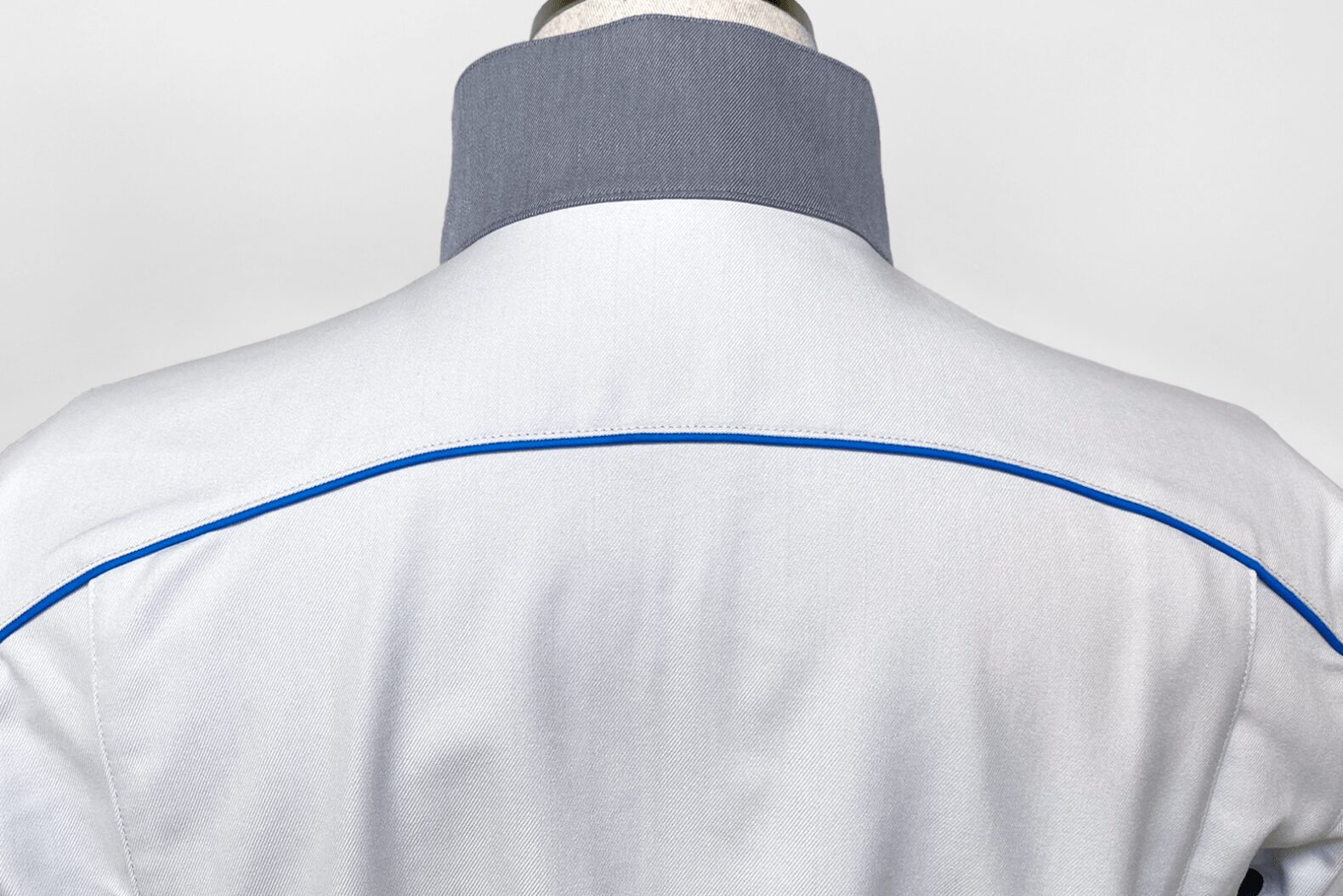 背中にはベアリングの弧をイメージしたカーブ状に、コーポレートカラーのパイピングを入れました。