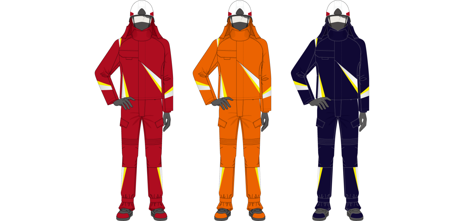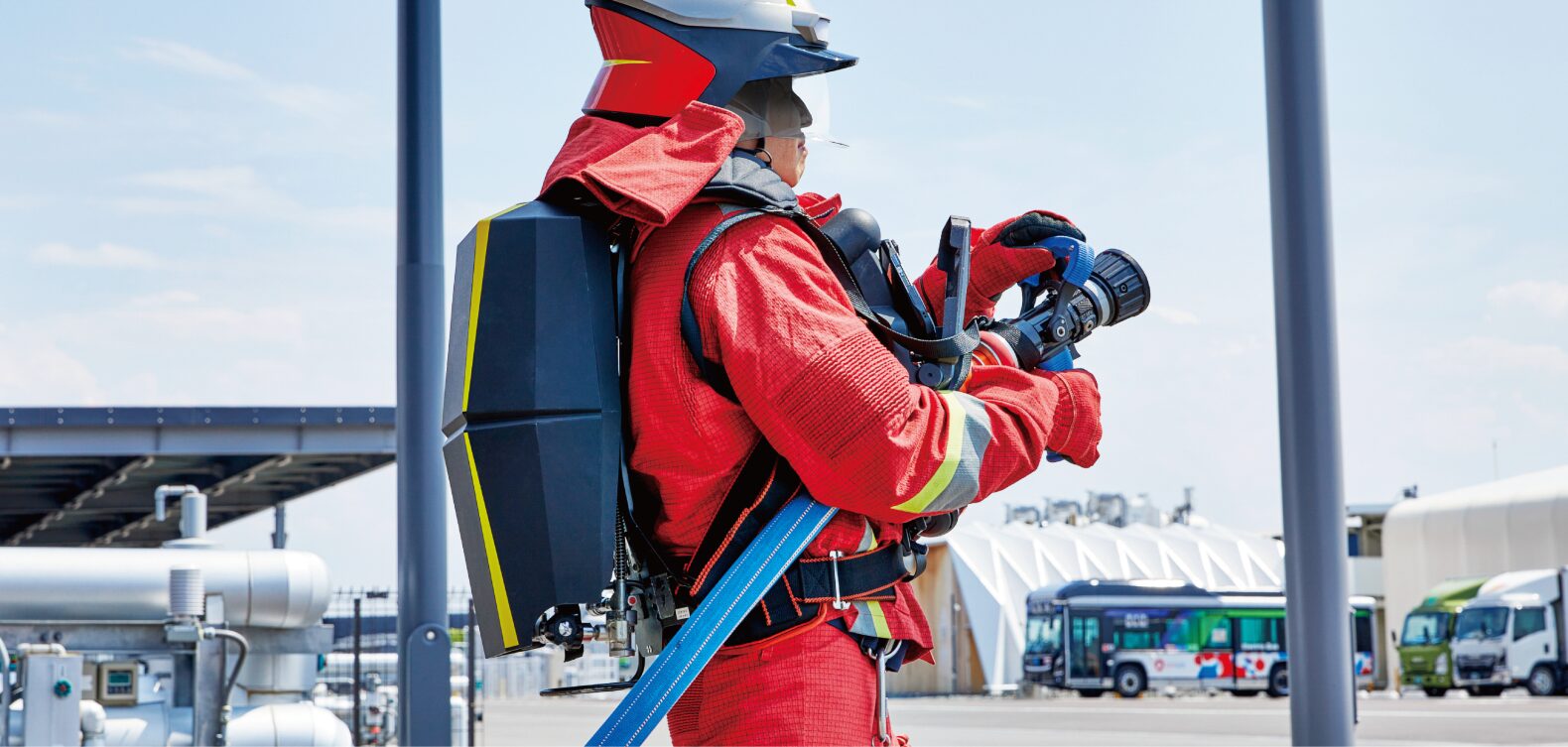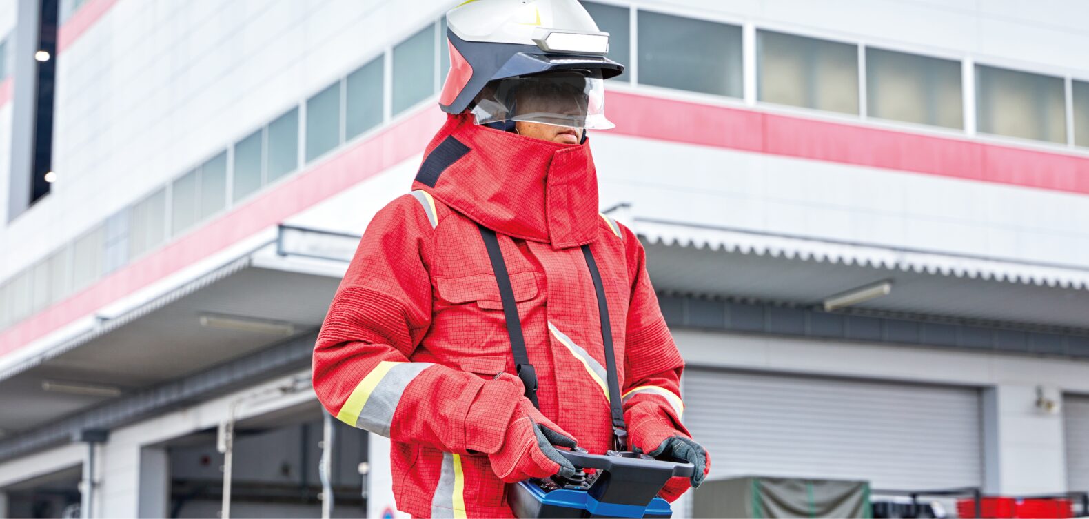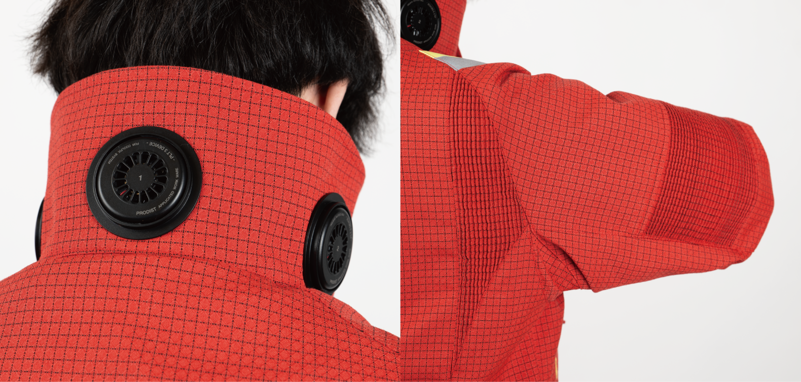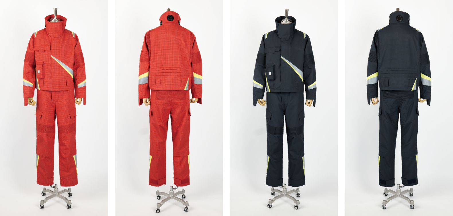 万博開催中の酷暑環境での消防活動をサポートする近未来をイメージした本格スペックの消防服。