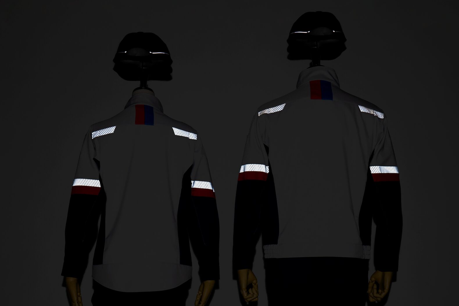 作業中における車両の人対車両事故回避を考慮し、適材適所に反射輝度の高い再帰性反射材を施しました。